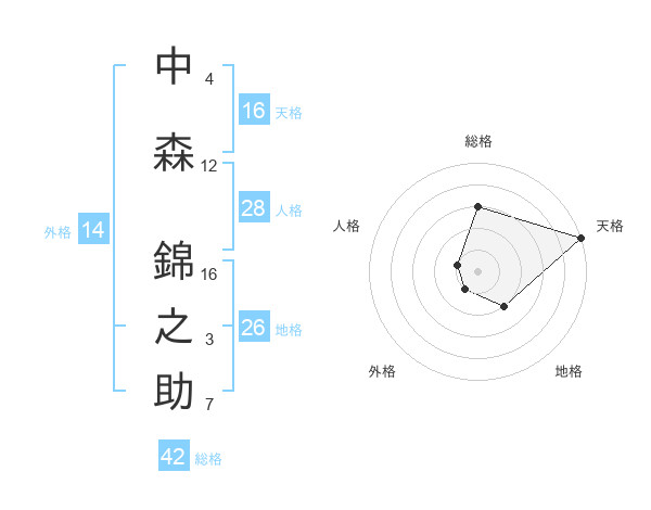 中森 錦之助さんを姓名の画数から五運を鑑定