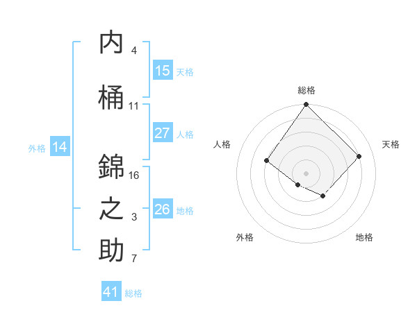 内桶 錦之助さんを姓名の画数から五運を鑑定
