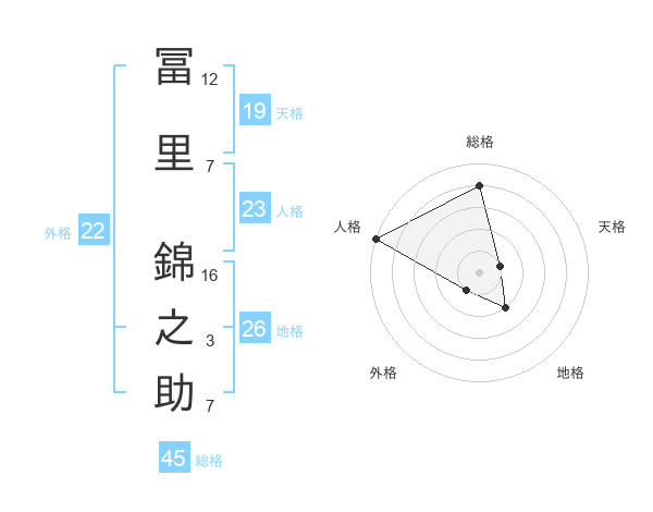 冨里 錦之助さんを姓名の画数から五運を鑑定