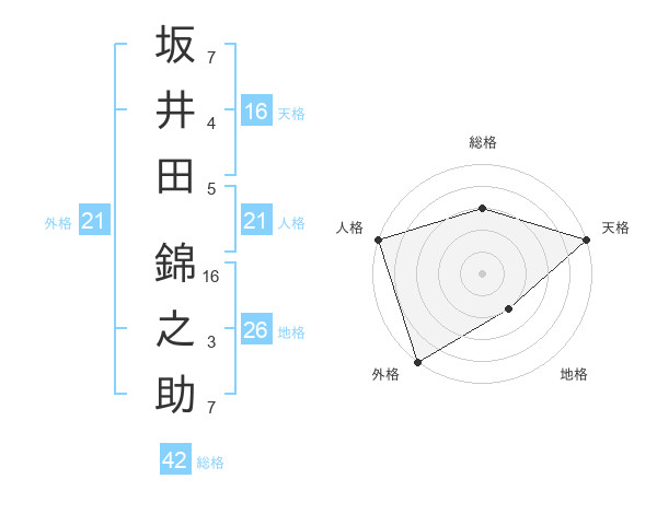 坂井田 錦之助さんを姓名の画数から五運を鑑定