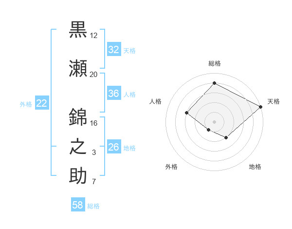 黒瀬 錦之助さんを姓名の画数から五運を鑑定