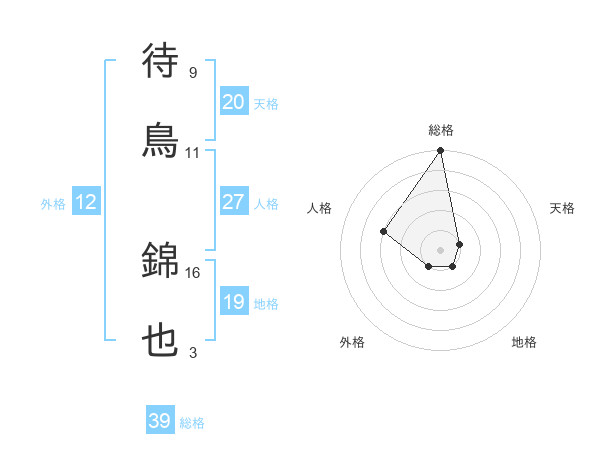 待鳥 錦也さんの総格は39画の5点!