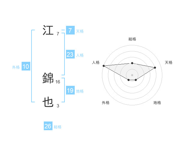 江 錦也さんの総格は26画の2点!