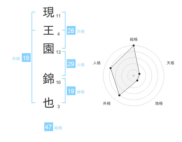 現王園 錦也さんを姓名の画数から五運を鑑定