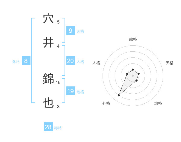 穴井 錦也さんの総格は28画の1点!