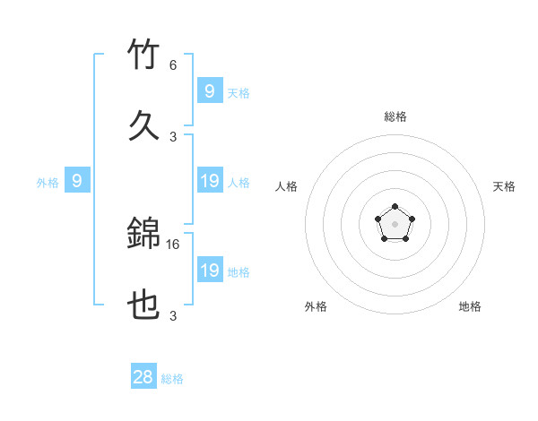 竹久 錦也さんの総格は28画の1点!