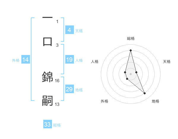 一口 錦嗣さんを姓名の画数から五運を鑑定