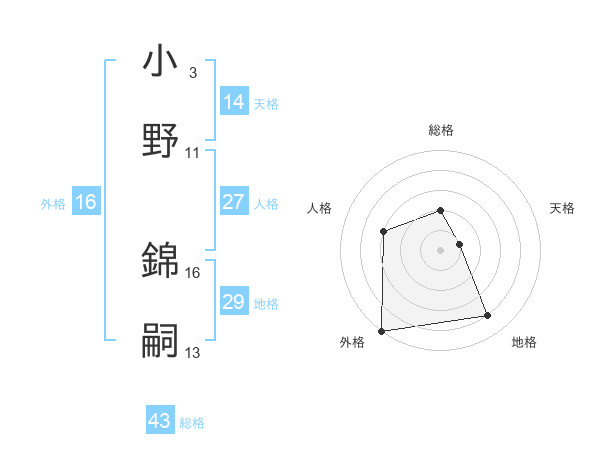 小野 錦嗣さんを姓名の画数から五運を鑑定