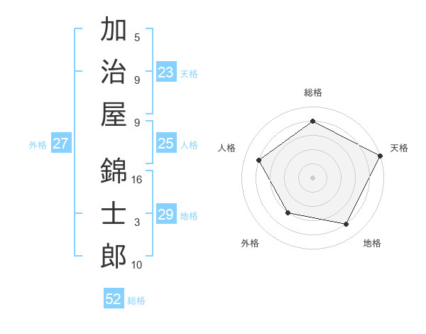 加治屋 錦士郎さんを姓名の画数から五運を鑑定