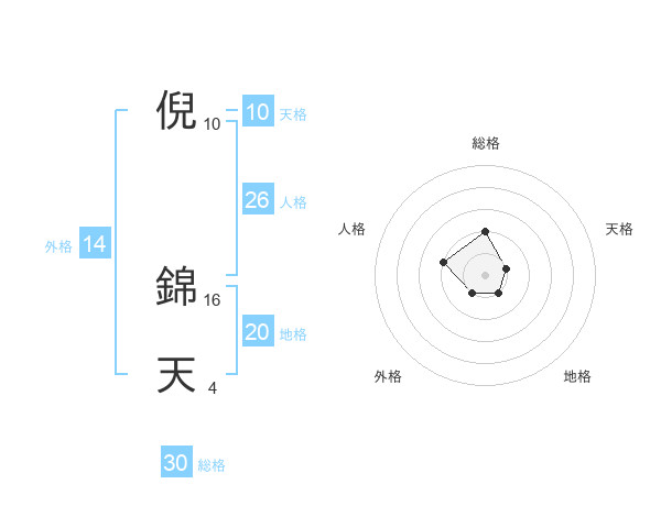 倪 錦天さんの総格は30画の2点!