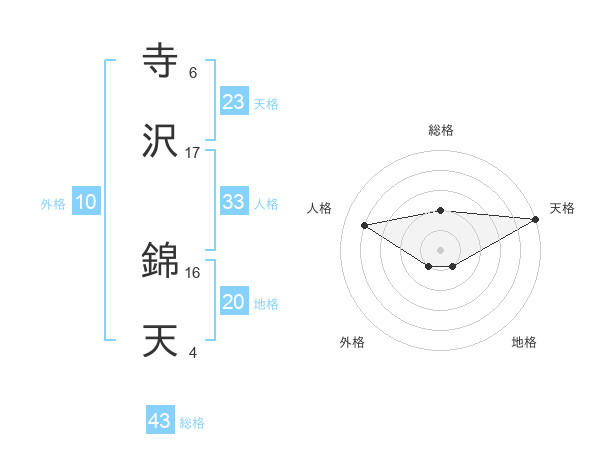 寺沢 錦天さんの総格は43画の2点!