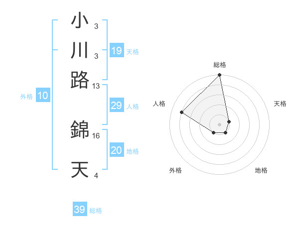 小川路 錦天さんを姓名の画数から五運を鑑定