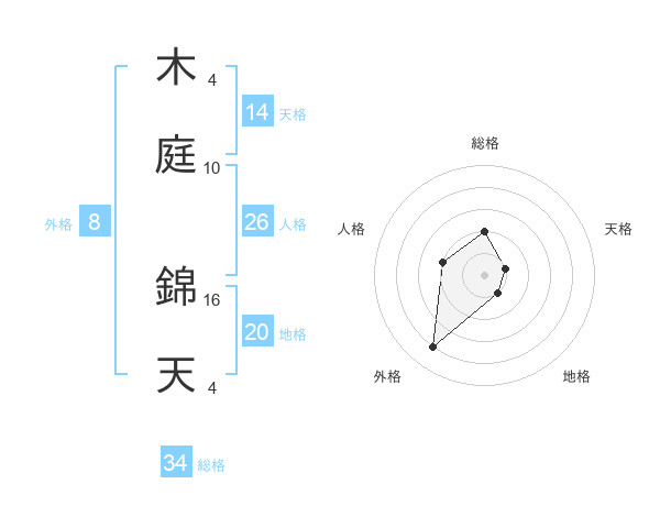 木庭 錦天さんの総格は34画の2点!