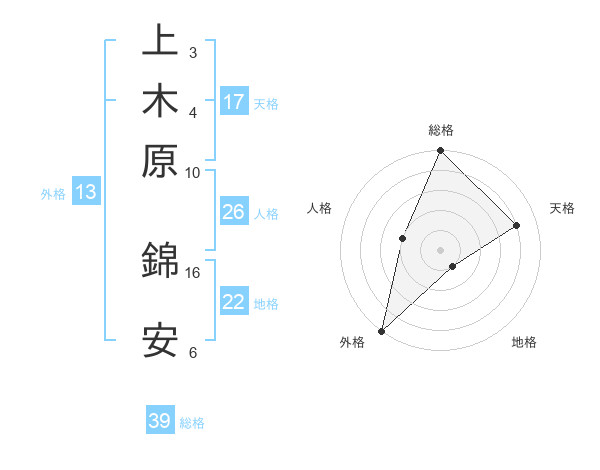 上木原 錦安さんを姓名の画数から五運を鑑定
