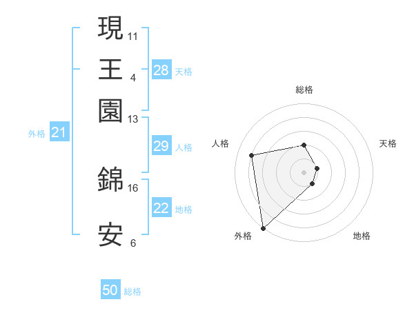 現王園 錦安さんの総格は50画の2点!