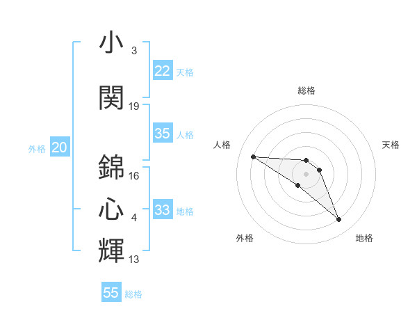小関 錦心輝さんの外格は20画の1点!