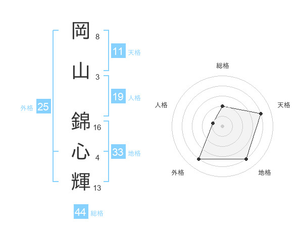 岡山 錦心輝さんを姓名の画数から五運を鑑定