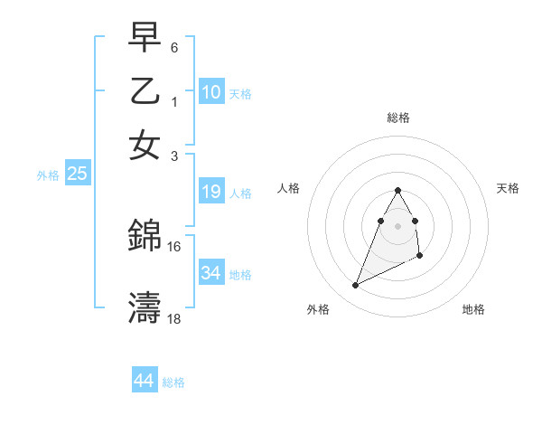 早乙女 錦濤さんの天格は10画の1点!