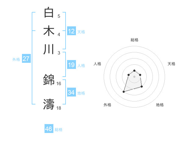 白木川 錦濤さんの総格は46画の1点!