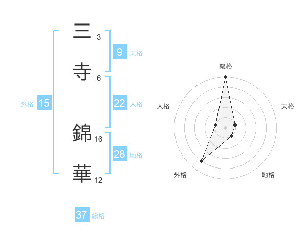 三寺 錦華さんの総格は37画の5点!