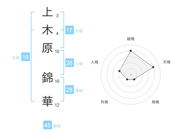 上木原 錦華さんの天格は17画の4点!