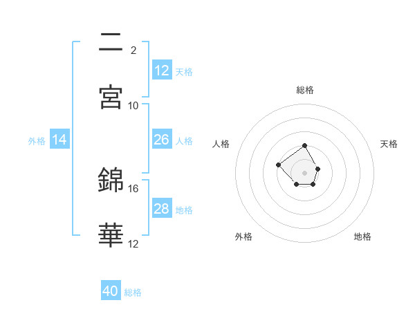 二宮 錦華さんを姓名の画数から五運を鑑定