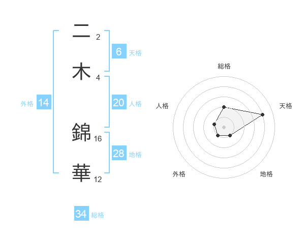 二木 錦華さんの総格は34画の2点!