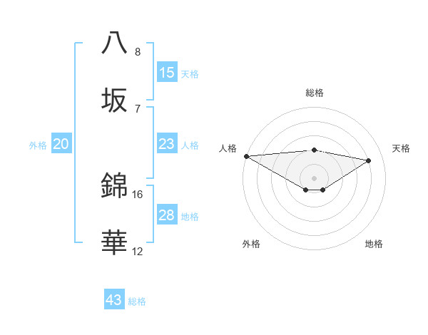 八坂 錦華さんの総格は43画の2点!