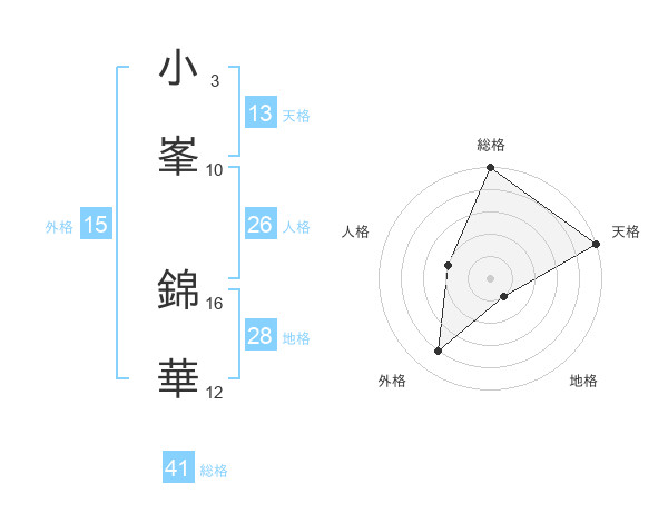 小峯 錦華さんを姓名の画数から五運を鑑定