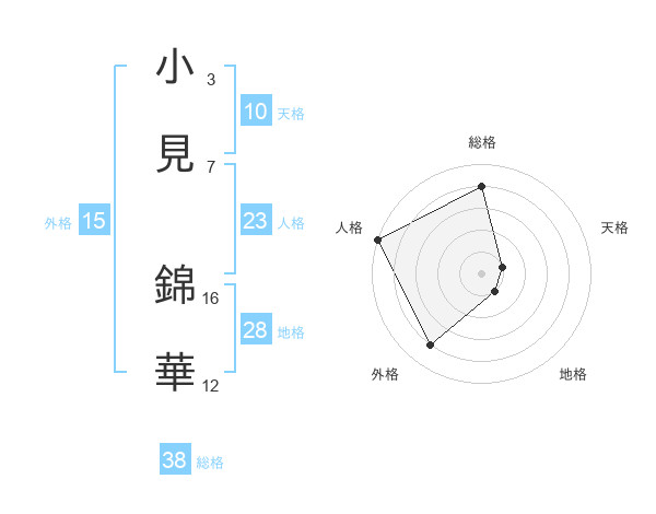 小見 錦華さんの総格は38画の4点!