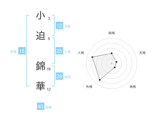 小迫 錦華さんの外格は15画の4点!