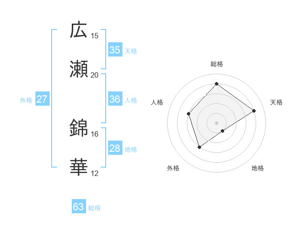 広瀬 錦華さんを姓名の画数から五運を鑑定