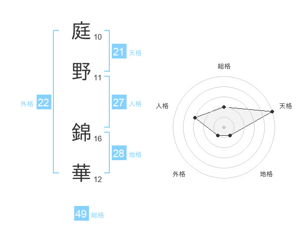 庭野 錦華さんを姓名の画数から五運を鑑定