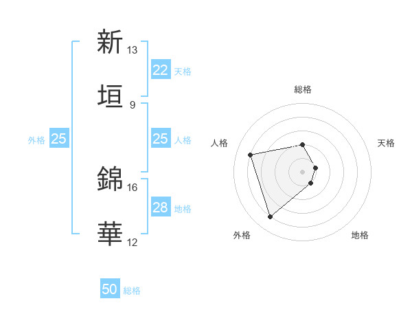 新垣 錦華さんの外格は25画の4点!