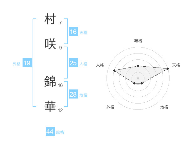 村咲 錦華さんの天格は16画の5点!