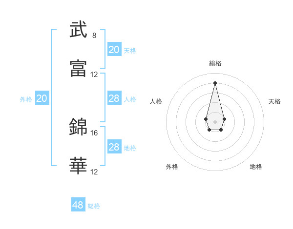 武富 錦華さんの総格は48画の4点!