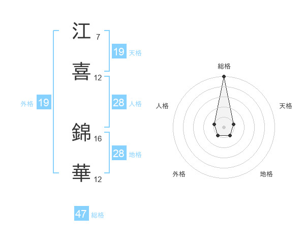 江喜 錦華さんを姓名の画数から五運を鑑定