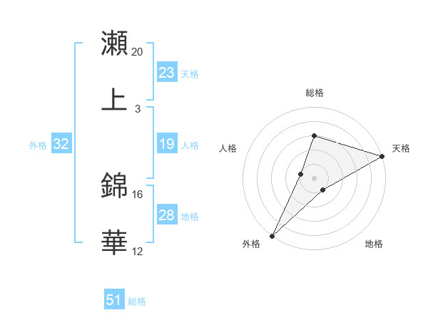 瀬上 錦華さんを姓名の画数から五運を鑑定