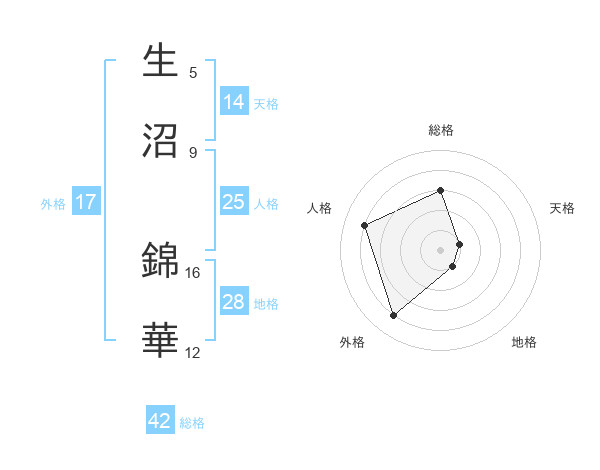 生沼 錦華さんを姓名の画数から五運を鑑定