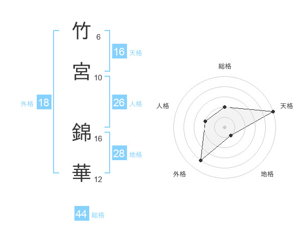 竹宮 錦華さんの総格は44画の2点!