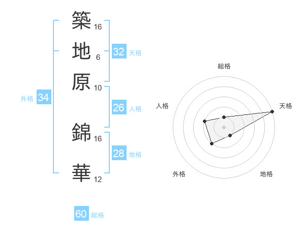 築地原 錦華さんの総格は60画の1点!
