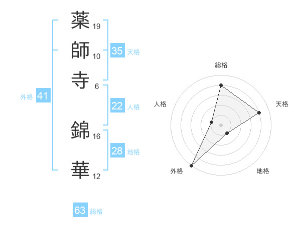 薬師寺 錦華さんを姓名の画数から五運を鑑定