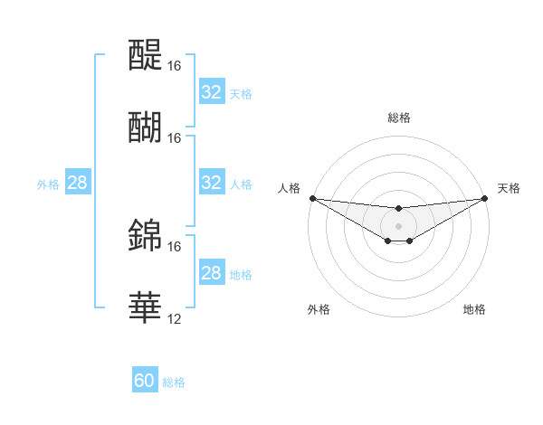 醍醐 錦華さんを姓名の画数から五運を鑑定