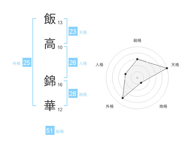 飯高 錦華さんを姓名の画数から五運を鑑定