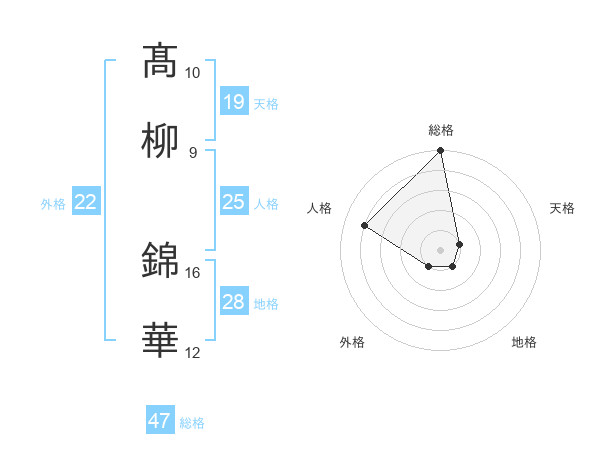 髙柳 錦華さんの総格は47画の5点!