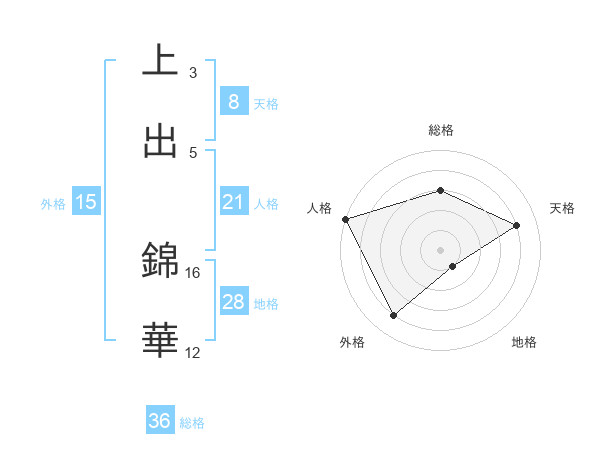 上出 錦華さんの総格は36画の3点!