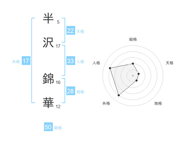 半沢 錦華さんの総格は50画の2点!