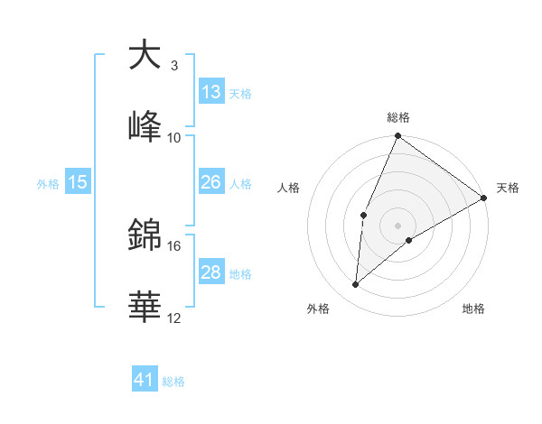大峰 錦華さんを姓名の画数から五運を鑑定