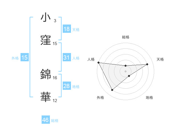 小窪 錦華さんを姓名の画数から五運を鑑定