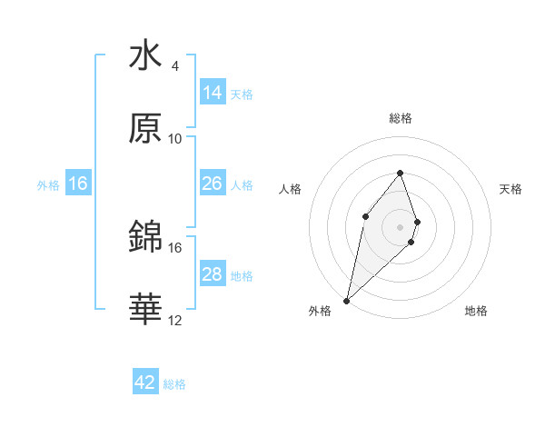 水原 錦華さんの総格は42画の3点!